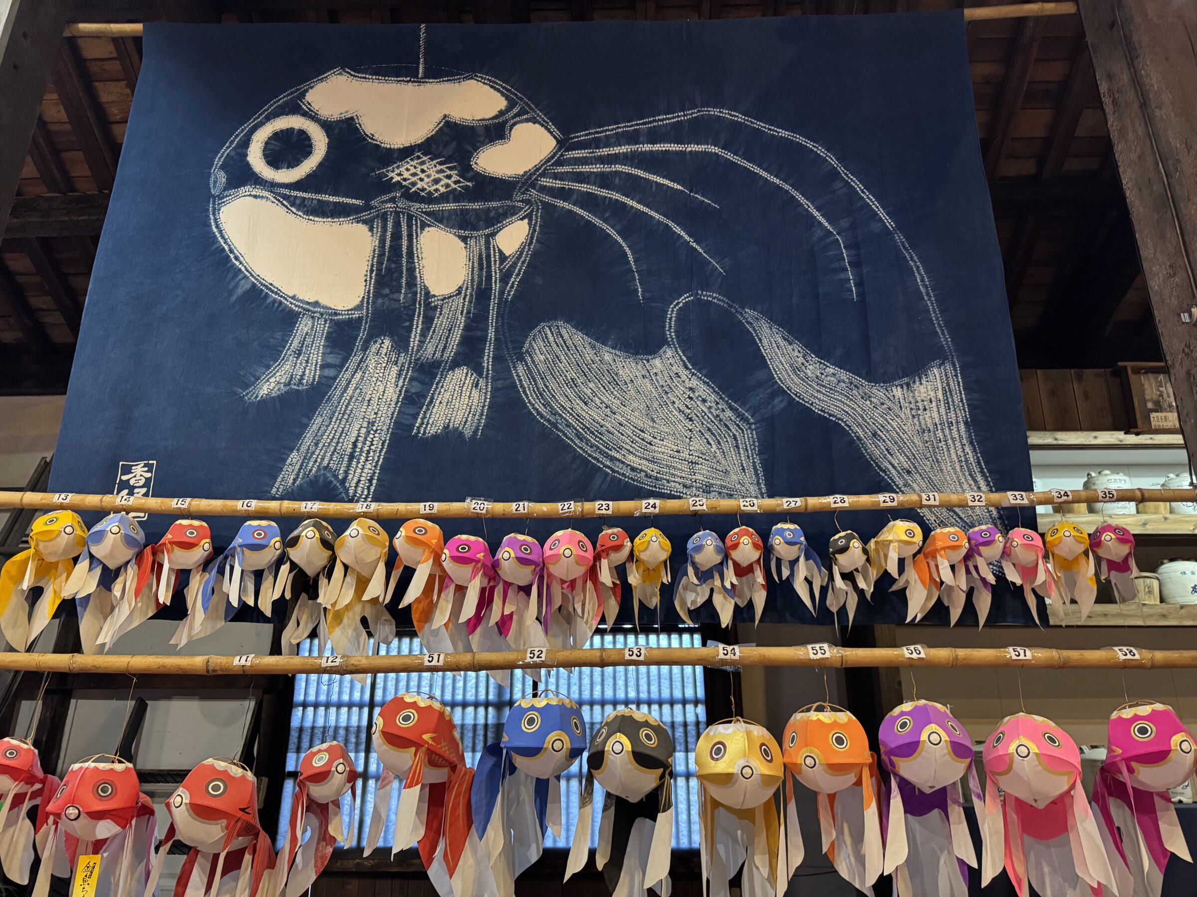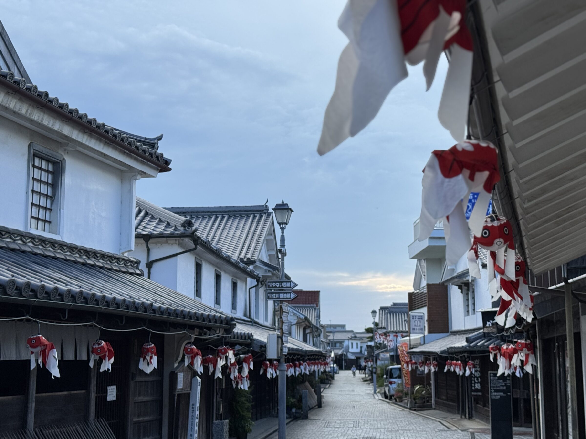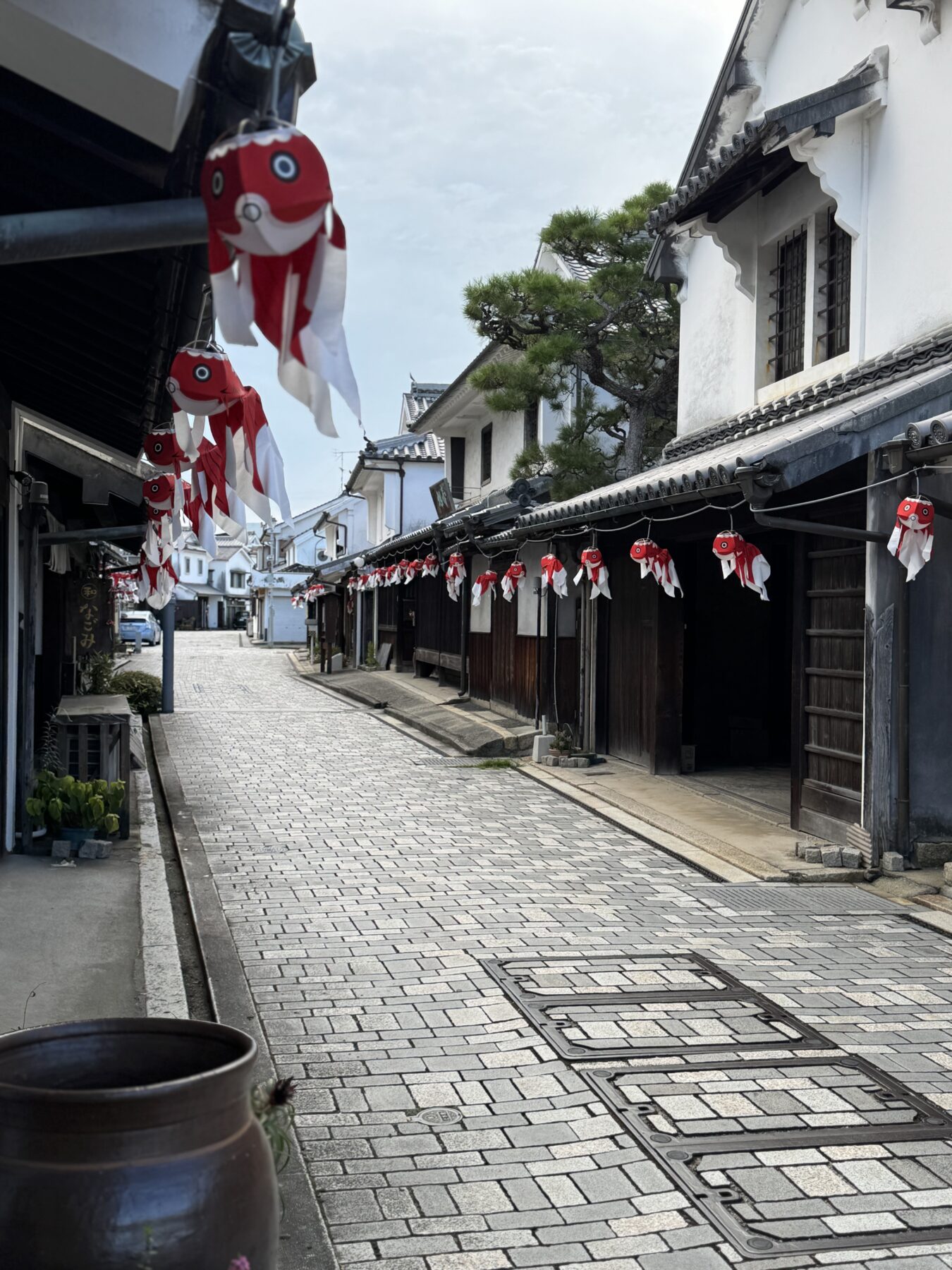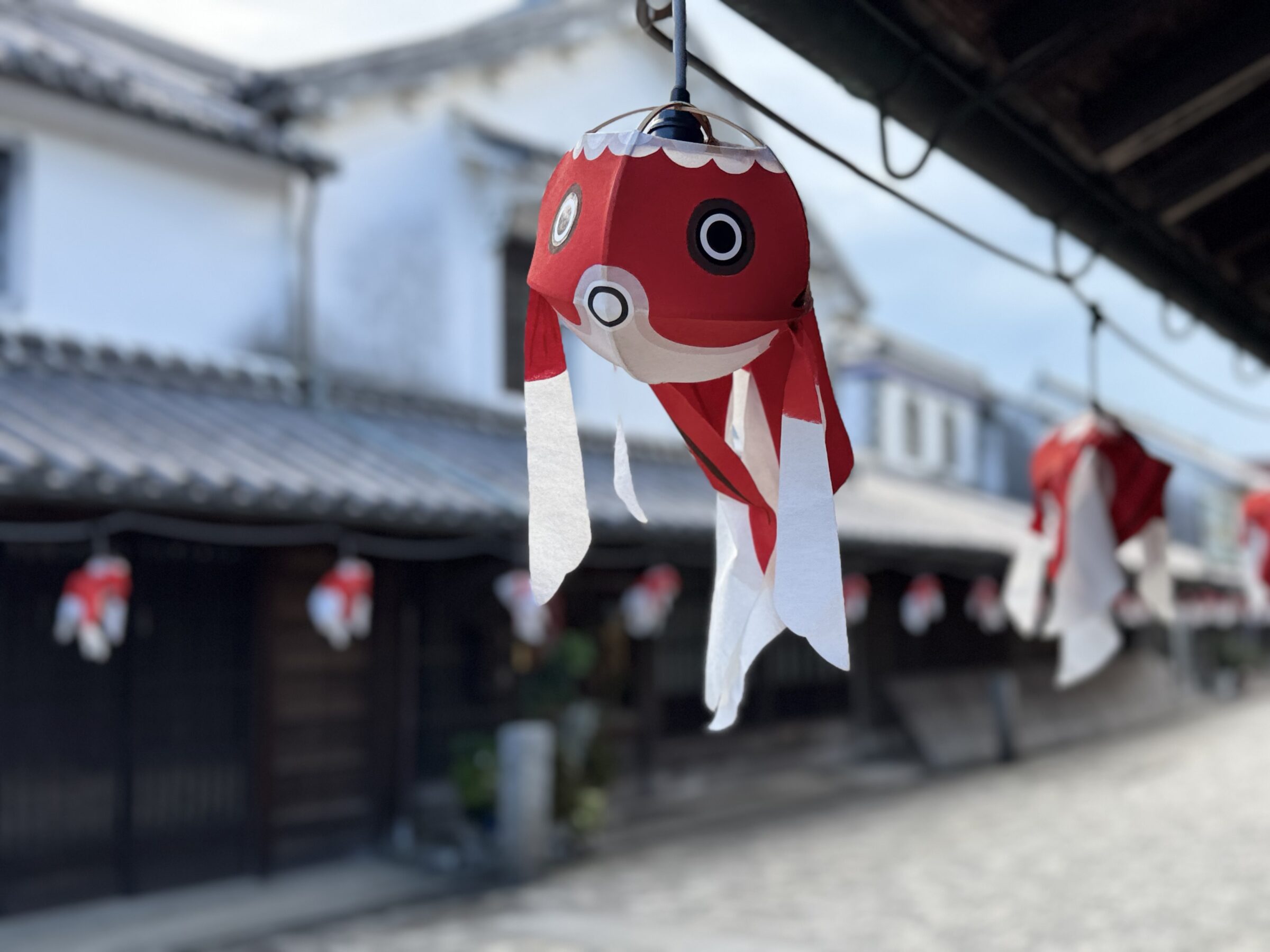 山口県 柳井市 白壁と金魚ちょうちんと海