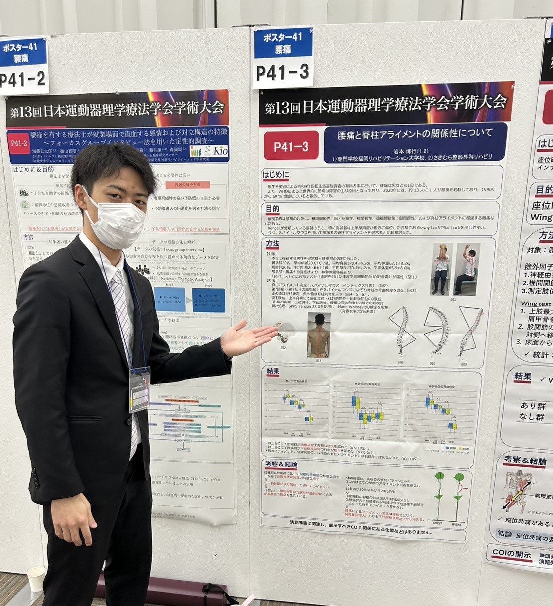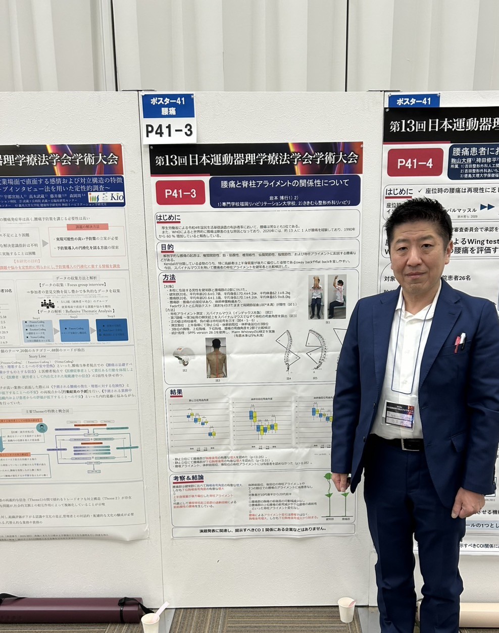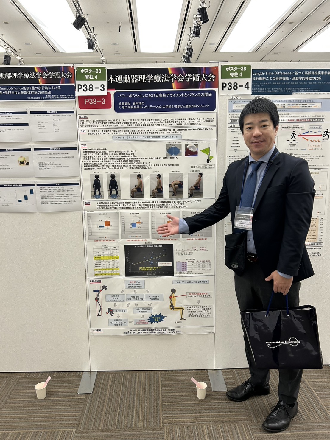 腰痛と脊柱アライメントの関係性について、パワーポジションにおける脊柱アライメントとバランスの関係、の2演題を発表。